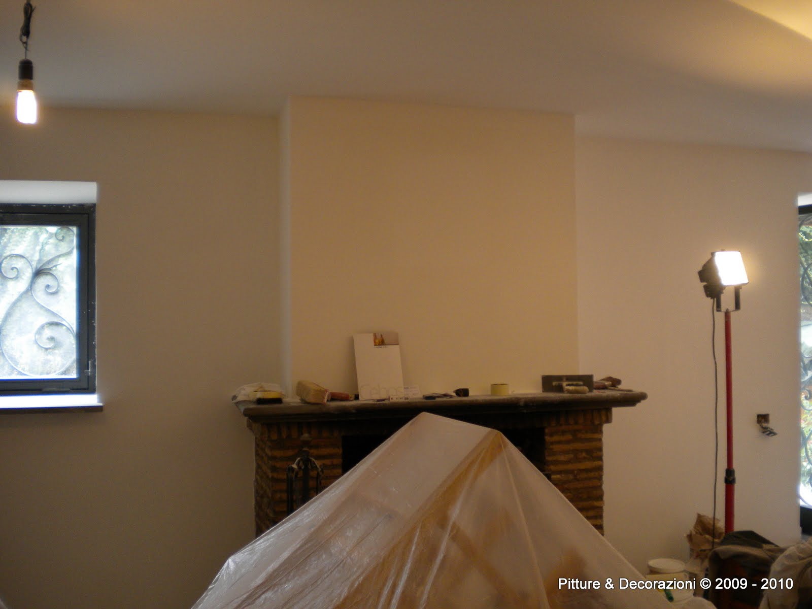 Un salotto ed un ingresso decorati con Ottocento Antico Velluto - Oikos. Scegli la consegna gratis per riparmiare di più. Pittura decorativa all'acqua che con i suoi accenti cromatici metalizzati, la sua semplicità di applicazione, le sfumature che in funzione della luce cambiano effetto come se in parete avessimo un velluto, suggella l'unione fra tecnica antica e prodotto moderno.